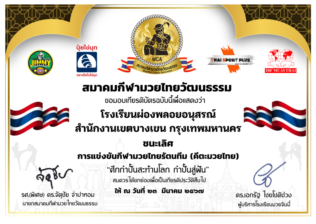 ขอแสดงความยินดีกับสมาคมกีฬามวยไทยวัฒนธรรม และ ทีมมวยไทยรัตนโกสินทร์ ในการประกวดมวยรัตนศิลป์ เมื่อ 11 พ.ค. 2567 ที่ โรงเรียนมวยจิมมี่  เดอะแจสรามอินทรา ชั้น 3