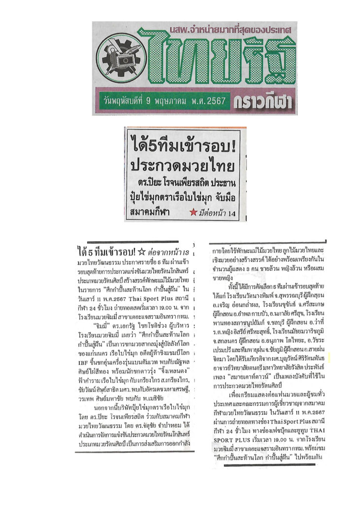 ขอบคุณ หนังสือพิมพ์ไทยรัฐ